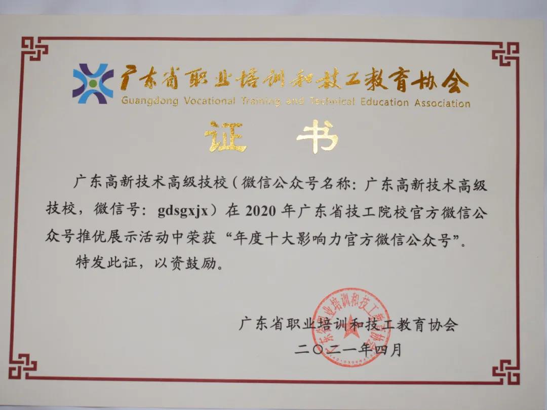 ★廣東省高新技術(shù)高級技工學(xué)校官方微信(微信號:gdgxjx)被評為“年度十大影響力官方微信公眾號”...
