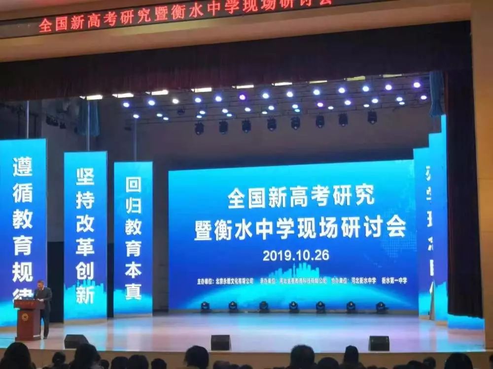 最后,我們聆聽了河北衡水中學(xué)副校長康新江有關(guān)《衡水新高考實施策略的報告》,他在報告中提出,新課改是挑戰(zhàn)與機遇并存的契機,對衡水中學(xué)來說是學(xué)校發(fā)展良好的動力,他認(rèn)為,衡中的優(yōu)勢在先進的辦學(xué)理念,嚴(yán)格的管理制度。他深信衡水學(xué)子在“大五觀”的引領(lǐng)下,定能在2020年的高考中勇奪桂冠,再創(chuàng)佳績。