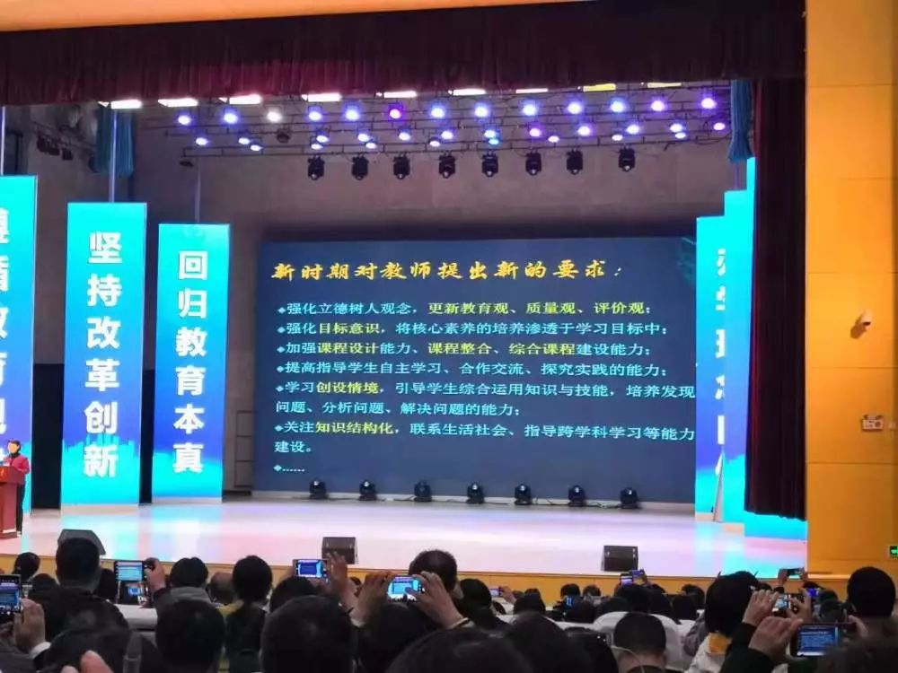 教育部基教司的專家做了關(guān)于《核心素養(yǎng)導(dǎo)向下的教學(xué)》專題報告,她從四個方面闡釋“核心素養(yǎng)下的教學(xué)”里面,提到“核心素養(yǎng)的概念”、“核心素養(yǎng)在學(xué)科中的體現(xiàn)”、“強化課程教材的育人功能”、“指向核心素養(yǎng)的教學(xué)改進”。最后,她對新時期的教師提出了新的要求,她希望新教師要強化立德樹人的觀念,更新教育觀,質(zhì)量觀,評價觀等。