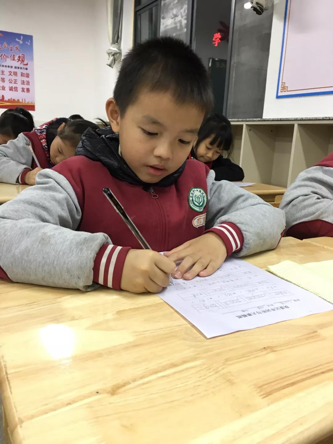 比賽開始了,諾大的書寫現(xiàn)場只有唰唰的寫字聲, 一個個干凈、整潔、漂亮的單詞在孩子們的指尖跳躍。