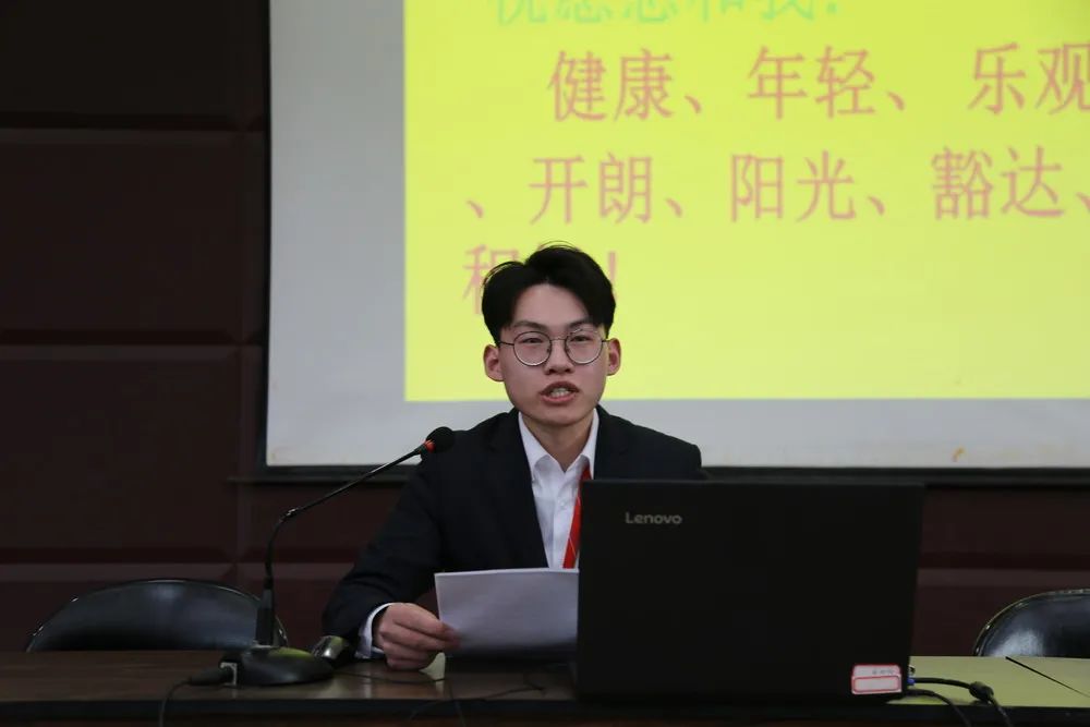 會議第三項:黨支部書記潘清上開學(xué)第一課。